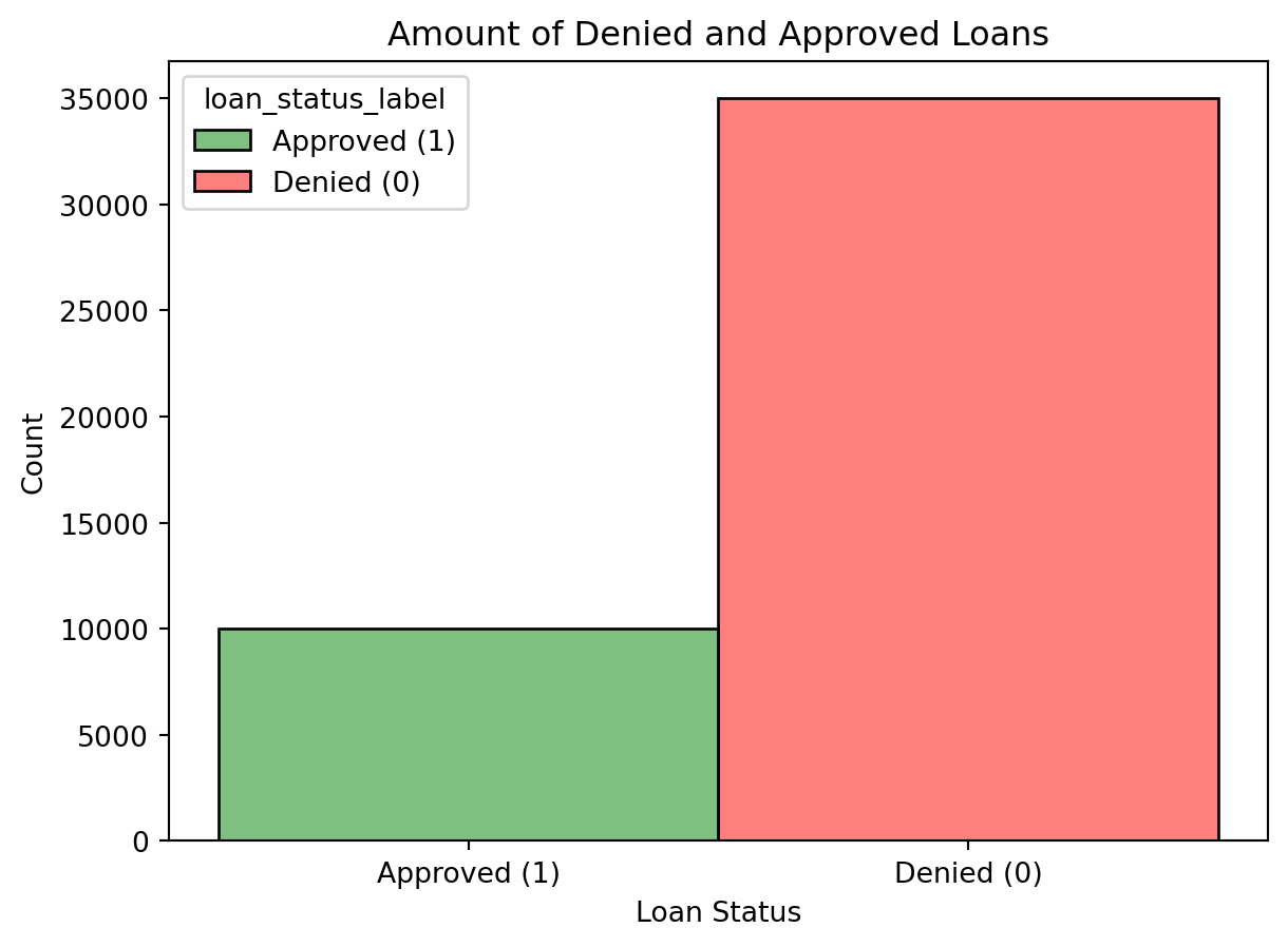 # Youssef Elbadry Accessed: 9th April 2025# Seeing which columns are Categorical and Numericalcat_cols = [var for var in loans_df.columns if loans_df[var].dtypes =='object']num_cols = [var for var in loans_df.columns if loans_df[var].dtypes !='object']print(f'Categorical columns: {cat_cols}')print(f'Numerical columns: {num_cols}')